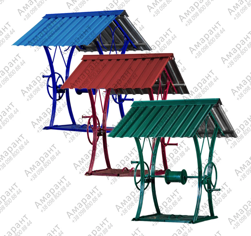 Модель Ключ относится к стационарным металлическим конструкциям. Она сочетает декоративное оформление и практичную часть: корба с ручкой предусмотрена как рабочий механизм, а крыша выполняет роль защиты внутренней зоны. В описании подчеркивается, что корпус получает антикоррозийную защиту, а рельефные элементы сохраняют внешний вид.