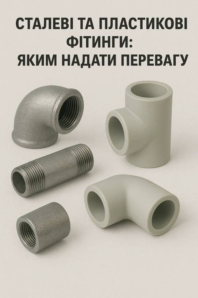 - Тип труб. Сталеві фітинги сумісні з металевими й мідними трубами, пластикові – з поліпропіленовими та ПВХ.