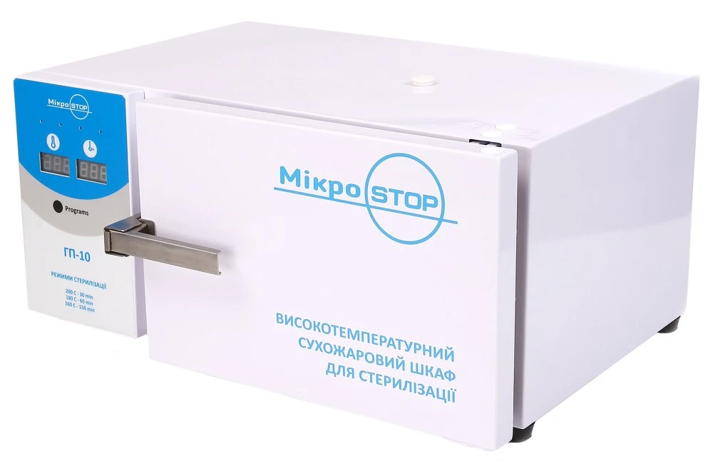 Внутри камеры поддерживается температура в диапазоне 160–200 °C. Инструменты предварительно проходят этап очистки и дезинфекции, затем помещаются в крафт-пакеты и загружаются в шкаф.